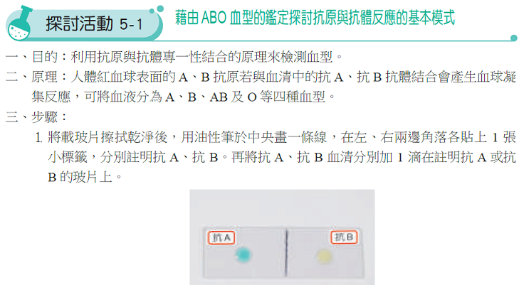 探討活動-由ABO血型的鑑定探討抗原與抗體反應的基本模式